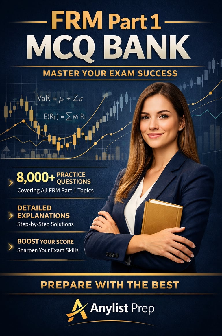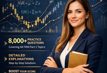 8000+ practice questions with theory explanations, practical examples, and numerical problems for FRM Part I.